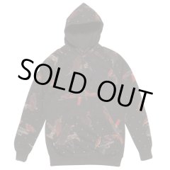 生地をデニム風に染め加工したパーカーボディーに、革命による黒人解放を提唱し、武装蜂起を呼びかけた徒党をモチーフにしたデザインをプリントしています。オンスが低い裏パイル生地を使用しています。