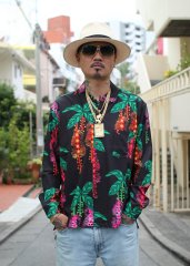 沖縄ローカルブランド【Ryukyu Pride Wear】から、陽が落ちる頃に花を咲かせ、夜明けには散ってしまう幻の花「サガリバナ」を全面にあしらった総柄シャツです!デザインは沖縄のタトゥースタジオ「HIDEOUT TATTOO」が担当。