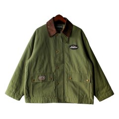 光沢感を抑えたマットな質感のフェイクレザー生地を採用。裏地には滑らかなポリエステル生地を使用し、快適な着心地も実現。フロント部分には、マチ付きの大き目なフラップポケットとシームポケットを施しました。フロント胸、バックに同色糸で刺繍し、武骨な風合いに仕上げています。