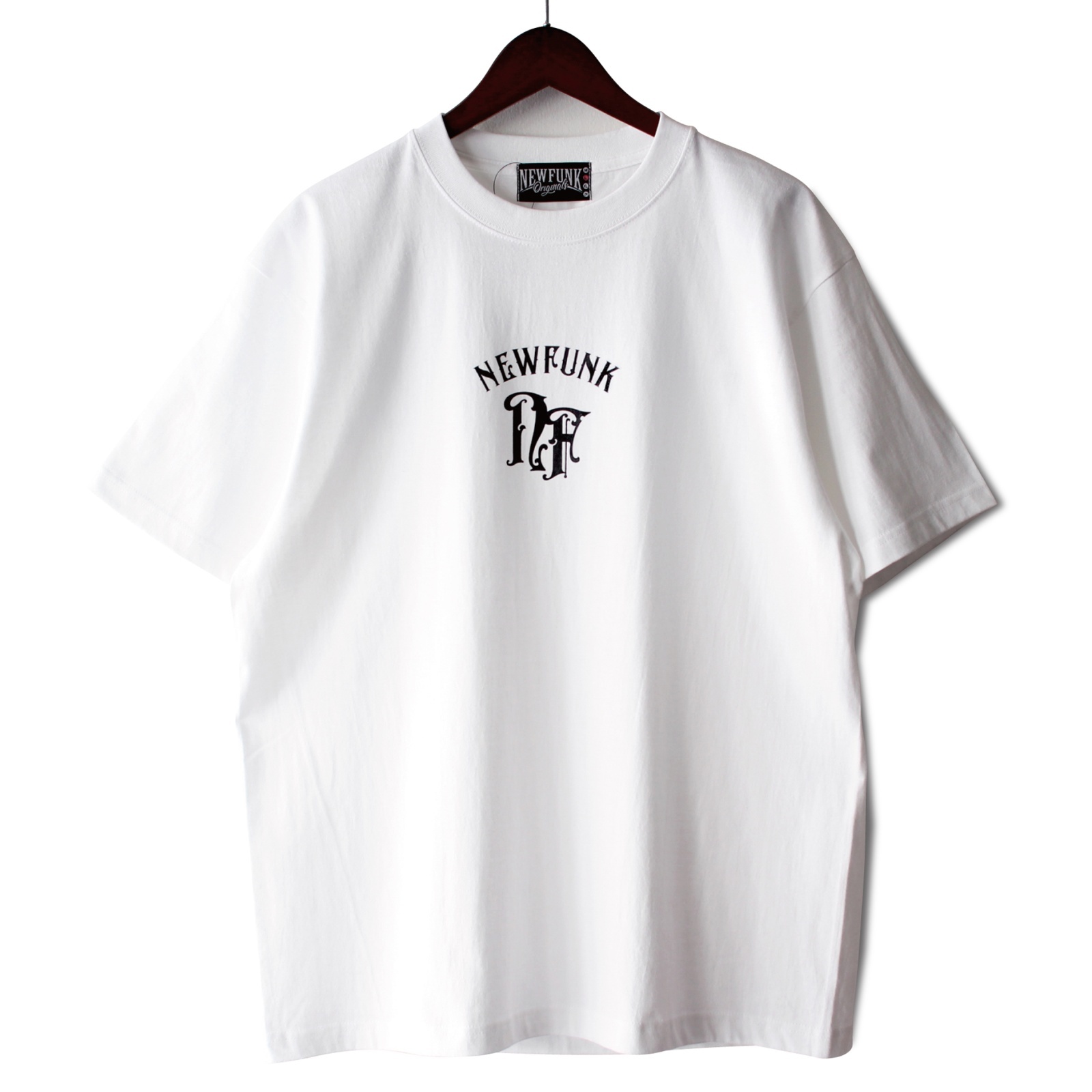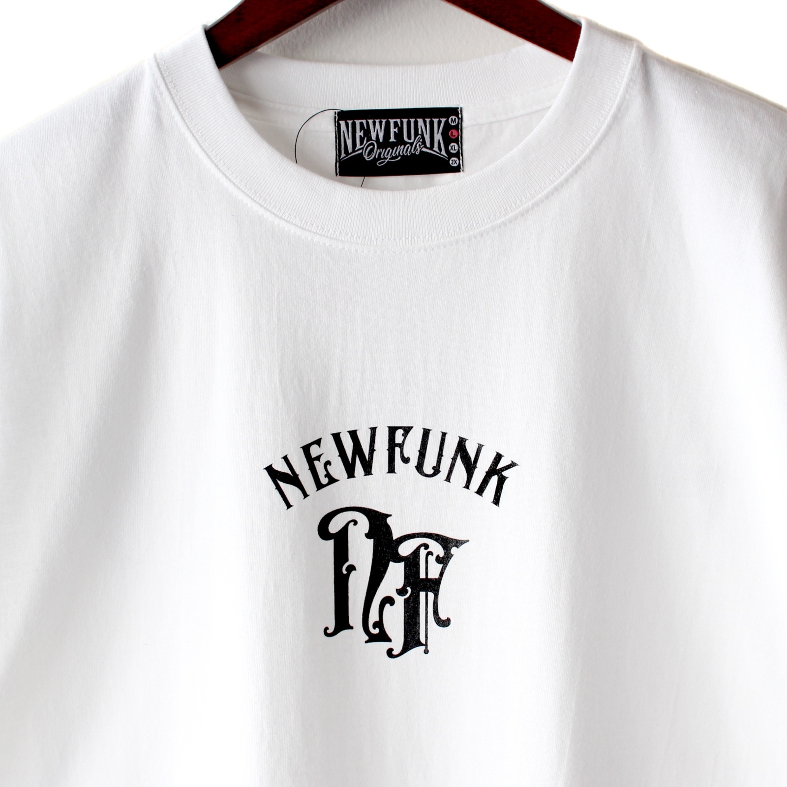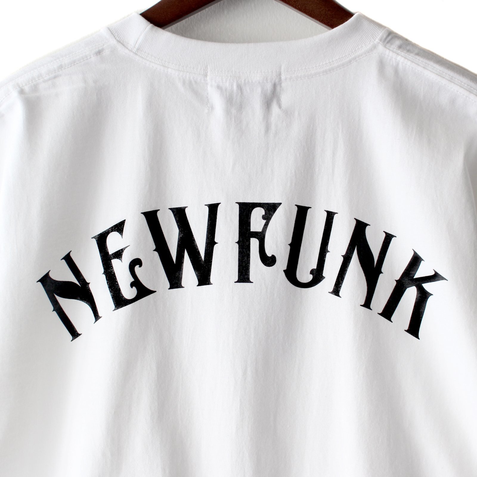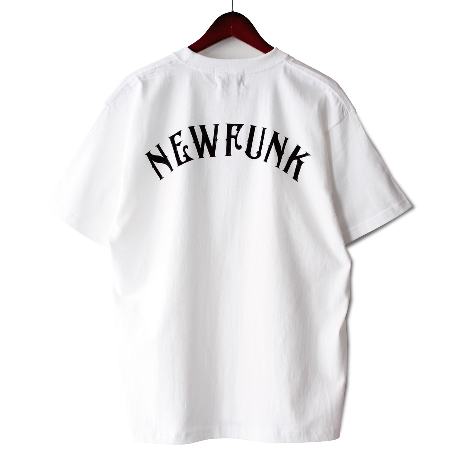 オリジナル"スパイシーフォント"で並べたNEWFUNKロゴがフロントとバックにプリントされています。