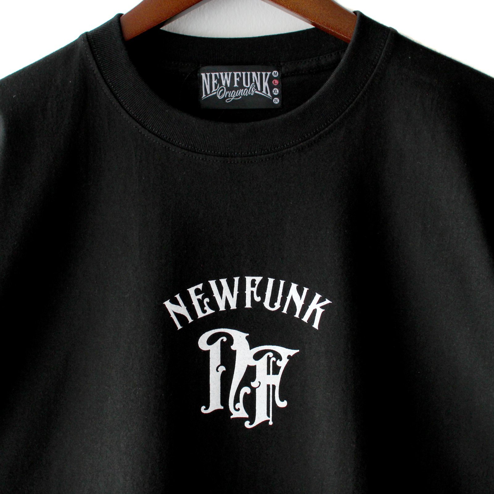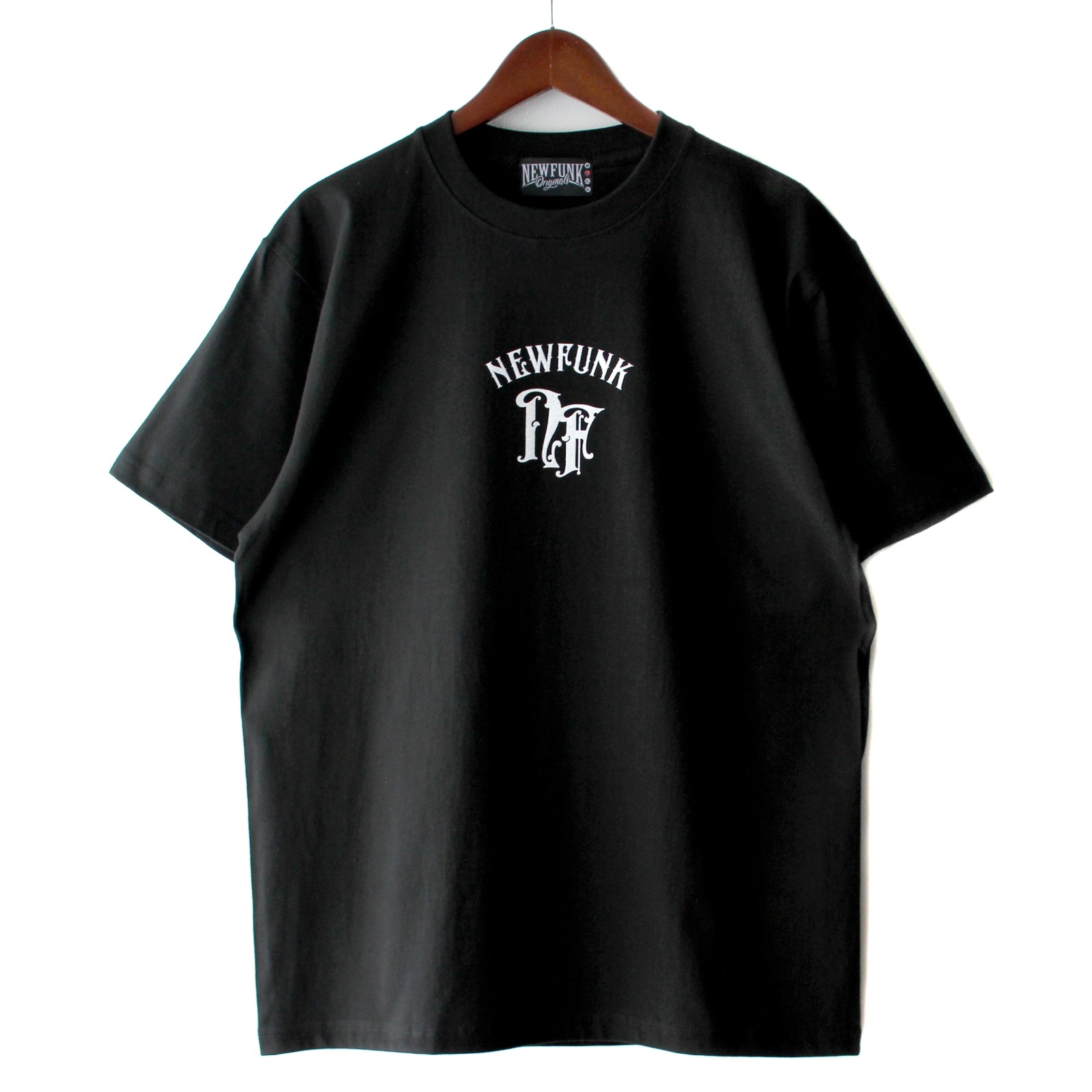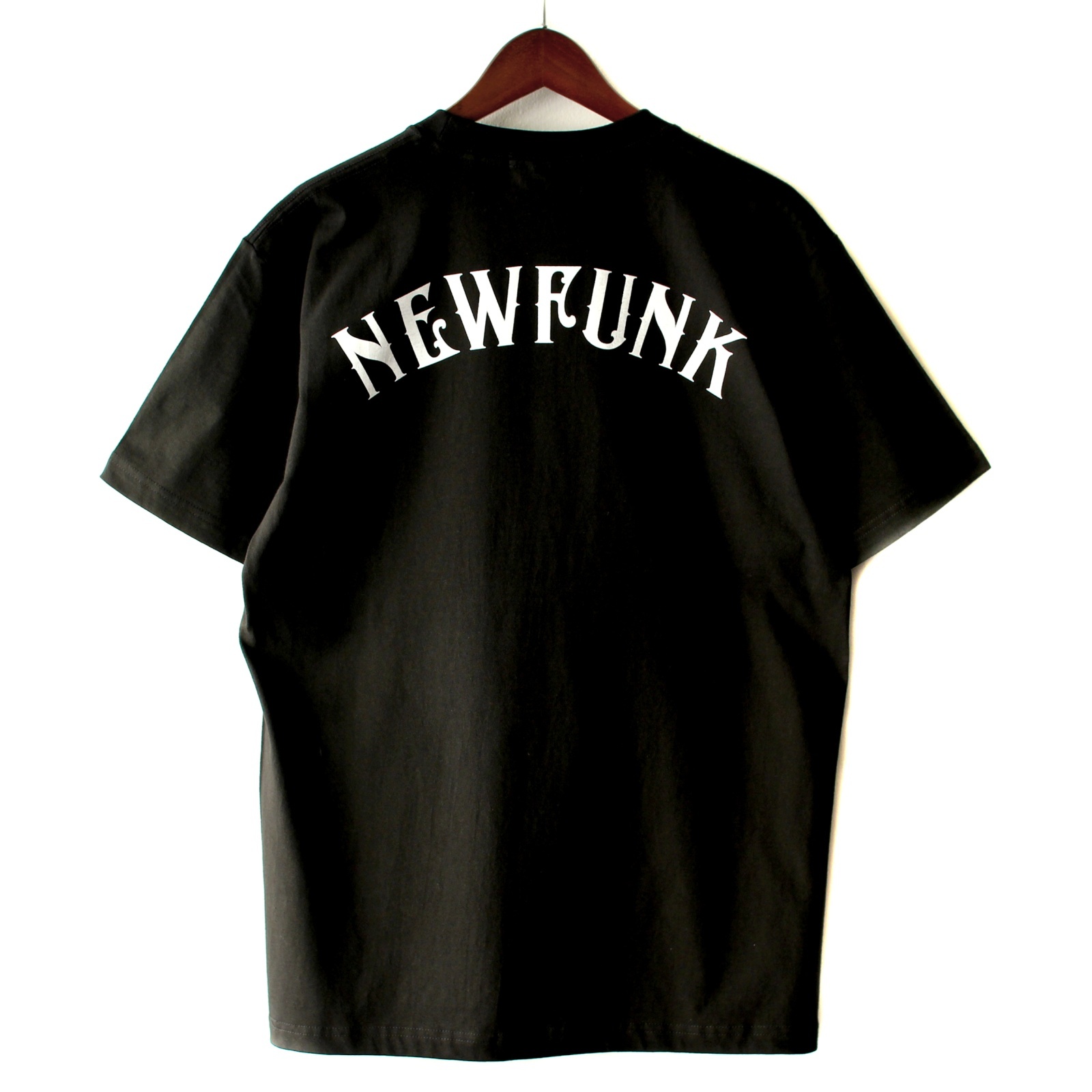 オリジナル"スパイシーフォント"で並べたNEWFUNKロゴがフロントとバックにプリントされています。