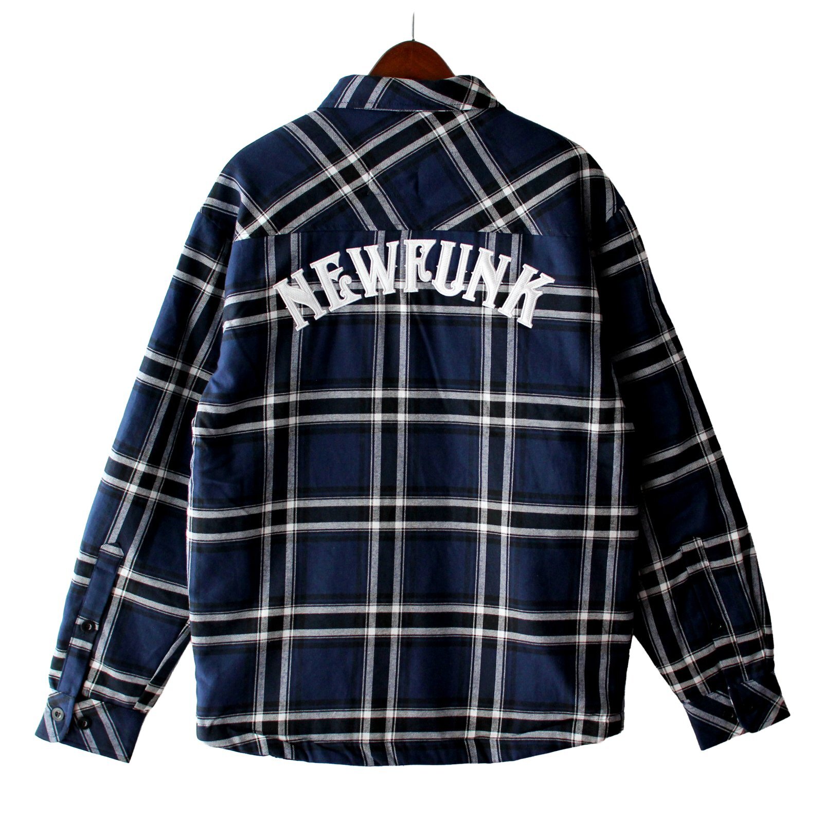 チェック柄のネルシャツ生地を表面に、裏地は中綿キルティング仕様となっていて、保温性あるライトアウターカテゴリーのジャケットとなっています。フロント/バックにNEWFUNK SPICY FONTを使用したロゴが刺繍されています。サイドにポケット付き。西海岸の雰囲気漂う男気あるスタイルでキメテ下さい!