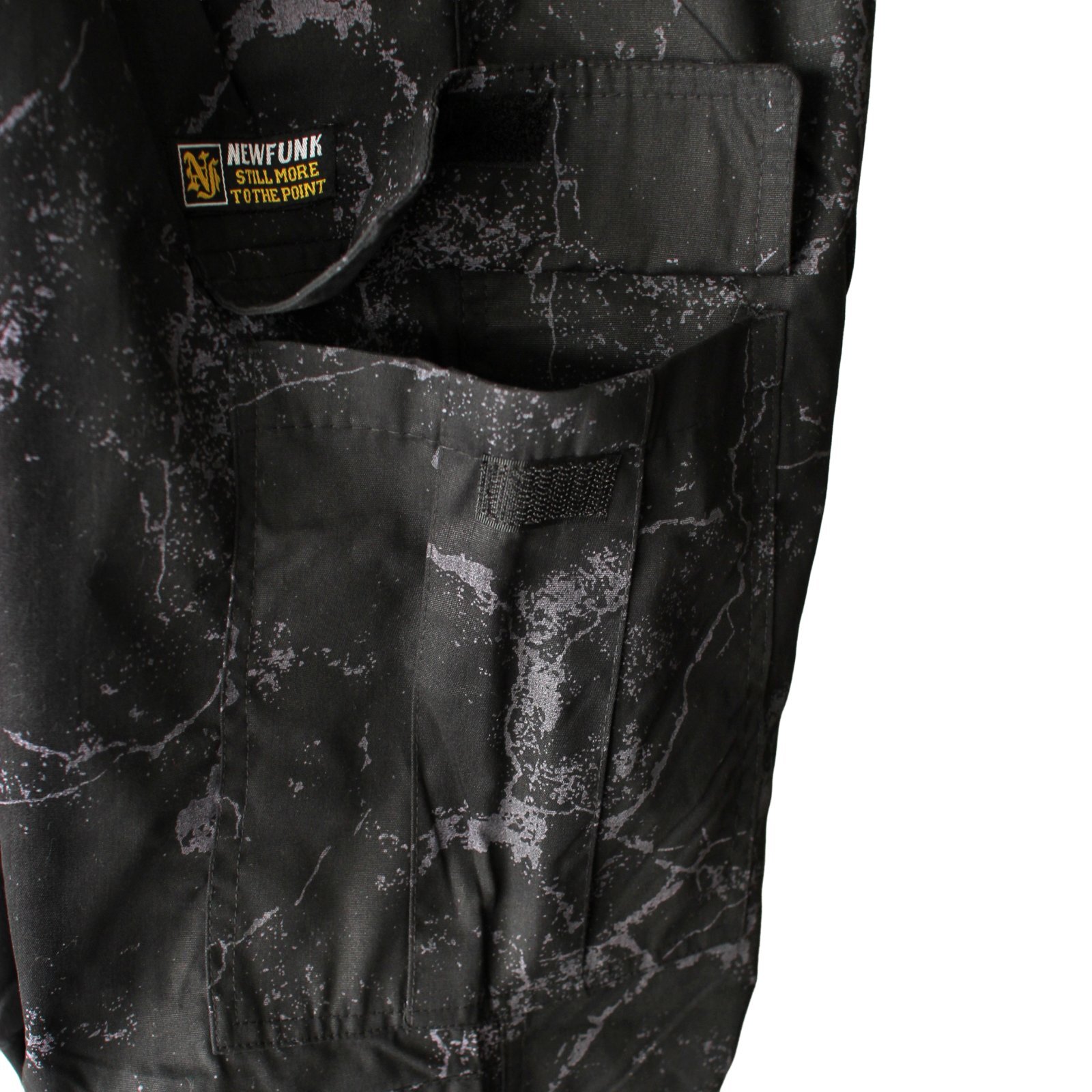 NEWFUNK Originalsのコンクリートの亀裂(クラック)を模した総柄のイージーカーゴパンツです。